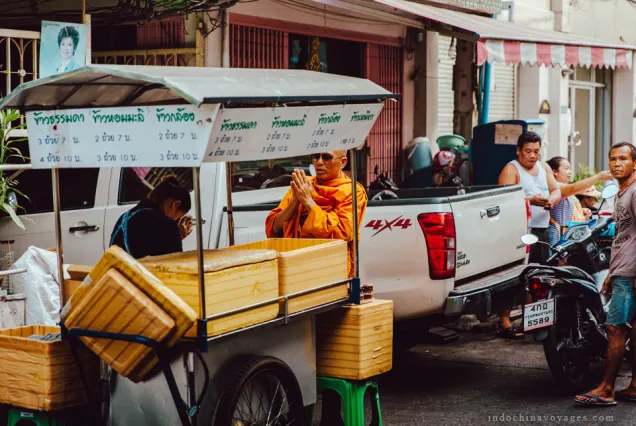 Early morning, get pick-up from your Bangkok hotel and get to the train station. Board the local train to Bang Pa In. Nicely on the river is the former summer palace, an eclectic collection of royal homes in a manicured park. On the way, you will arrive at the former royal capital of Ayutthaya, where Unesco declared the ruins of temples and surrounding structures a world heritage site. Wat Chai Wattanaram is particularly beautiful and was built in the same style as the famous temples in Angkor, Cambodia. Your guide transforms the ruins into their former glory while explaining what happened when the Burmese army sacked and destroyed the place, taking away all the gold once covering the temples to Burma. We continue to get deeper into the central plain, filled with sugar cane or corn depending on the season. Trucks are piled up high and workers ride on top of them. Make sure to ask for a stop and taste a refreshing freshly pressed sugar cane juice. Arrive in Uthai Thani, a friendly place not much frequented by foreign tourists. A stroll on the night market might tempt you to try a local specialty.