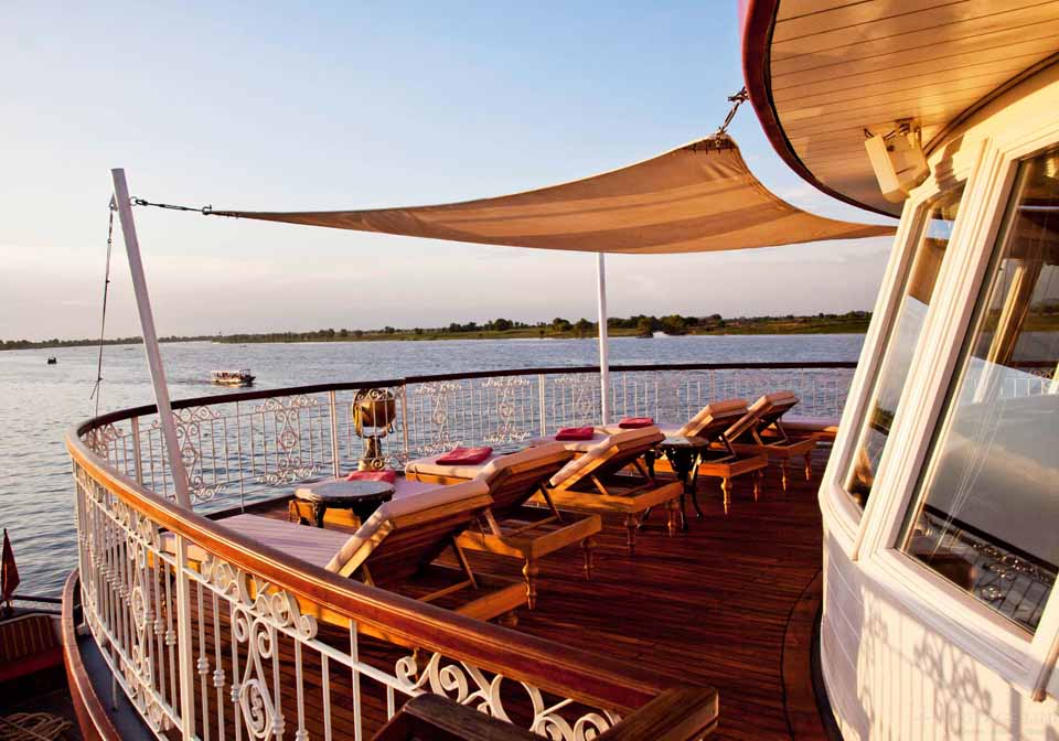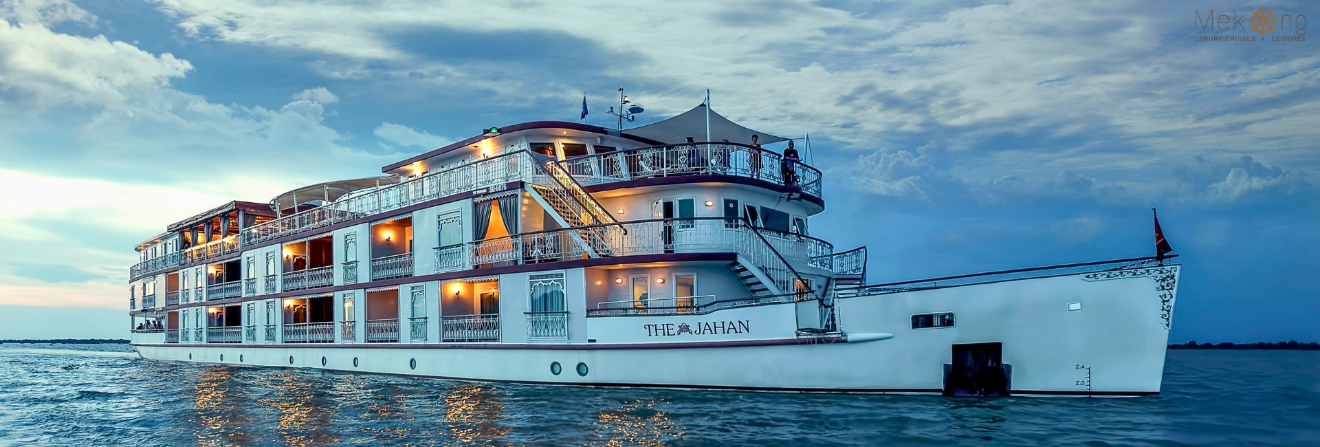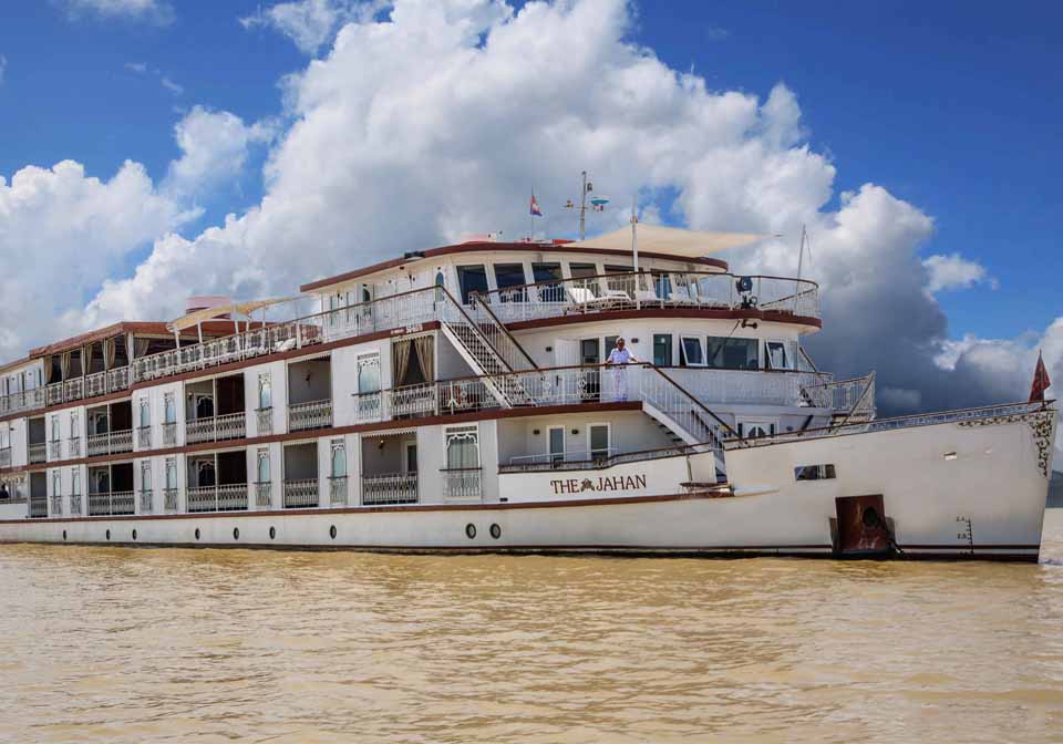 The Heritage Line Jahan Cruise is the luxury Mekong cruise of Heritage Line’s most romantic cruise liner. Considered the brother of The Jayavarman in Heritage Line’s “family” of cruise ships, this magnificent Mekong cruise was named after the Indian emperor Shah Jahan, who ruled the Mughal Empire from 1628 to 1658. A great patron of architecture and the arts, Shah Jahan oversaw the construction of many legendary sites, including India’s dazzling Red Fort and the famed 777 gardens of Kashmir. This cultured monarch is a fitting namesake for The Jahan, which evokes the opulent vessels of British India. No expense has been spared in the interior or exterior decorations, which showcase the talents of local woodworkers, weavers, and artists.
