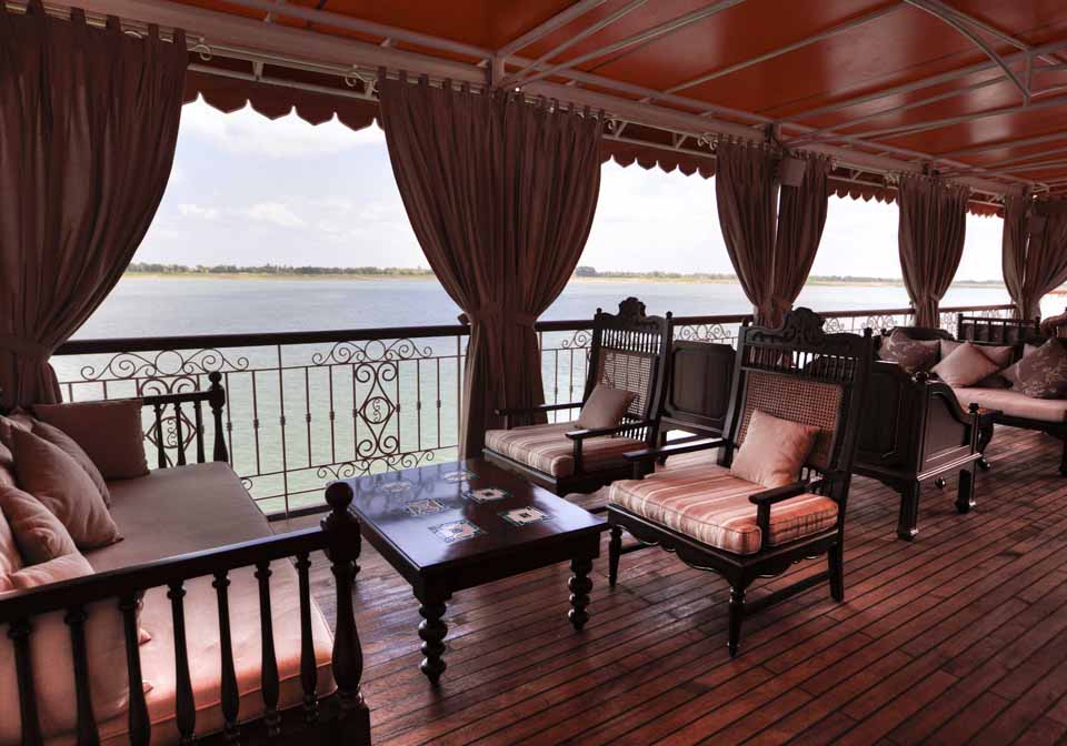 Heritage Line Jahan Cruise offers you a variety of activities to indulge in. You can choose to relax in your luxurious cabins, meet friends in the atmospheric East India Club, soak in the Jacuzzi on the Pool Deck, challenge a new friend to a game of chess in the Observatory Lounge, or enjoy a pampering massage in the Apsara Spa. With three decks, this vessel offers all the amenities of a fine resort, including a fitness center, steam rooms, a range of dining venues, and an excellent spa. Stretching 70 meters/230 feet from bow to stern, The Jahan features 26 beautifully designed cabins on two decks, each with its own private balcony.